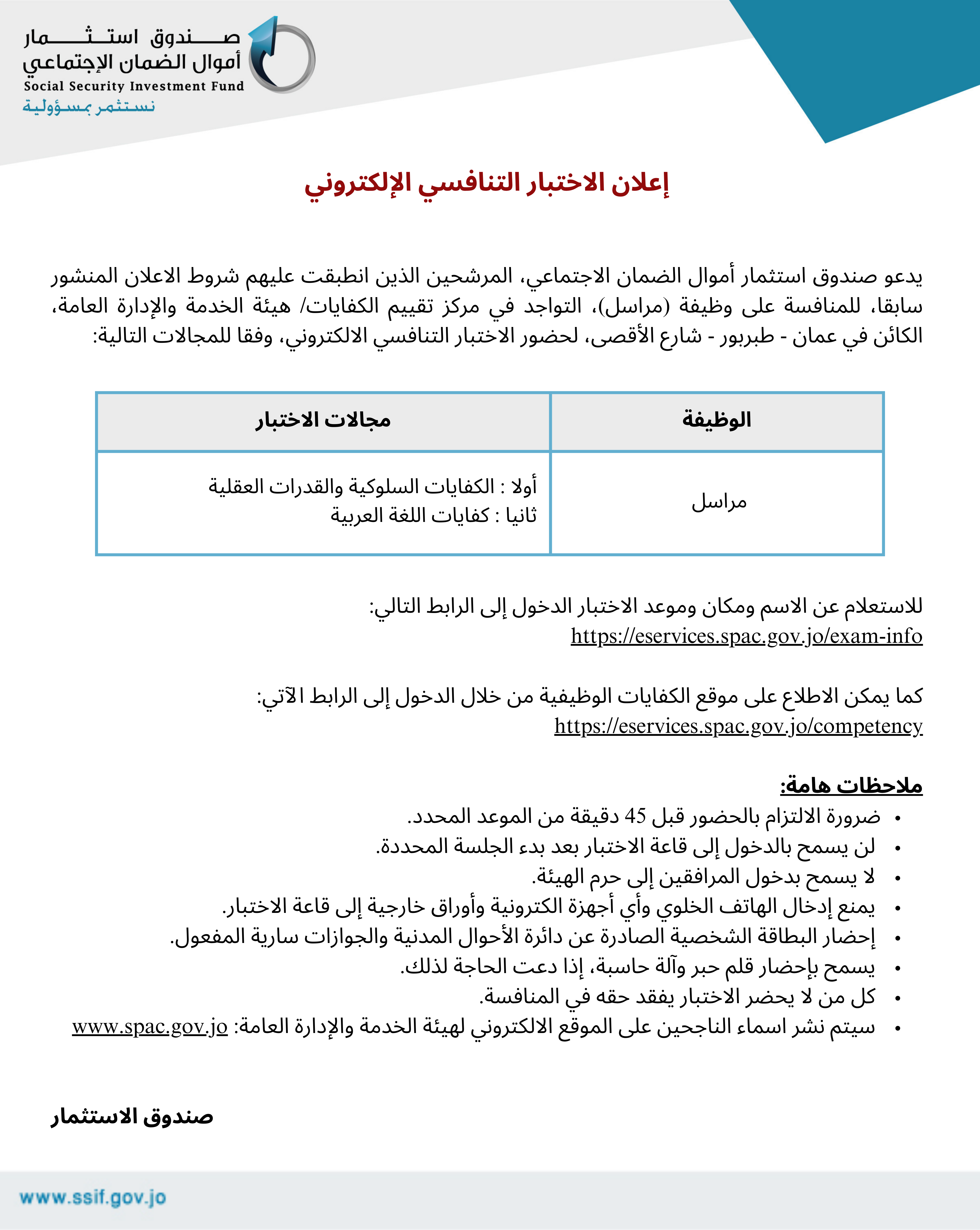 لاستعلام عن الاسم ومكان وموعد الاختبار، يرجى الضغط على الرابط التالي: