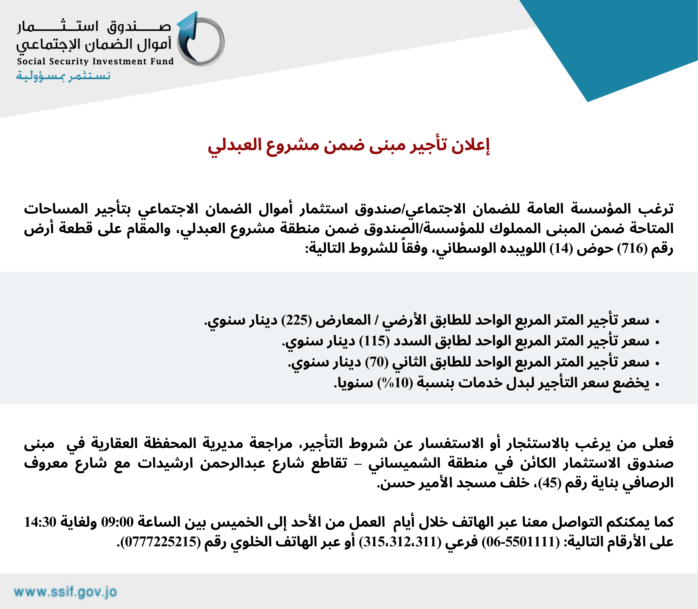 اعلان تأجير مبنى ضمن مشروع العبدلي