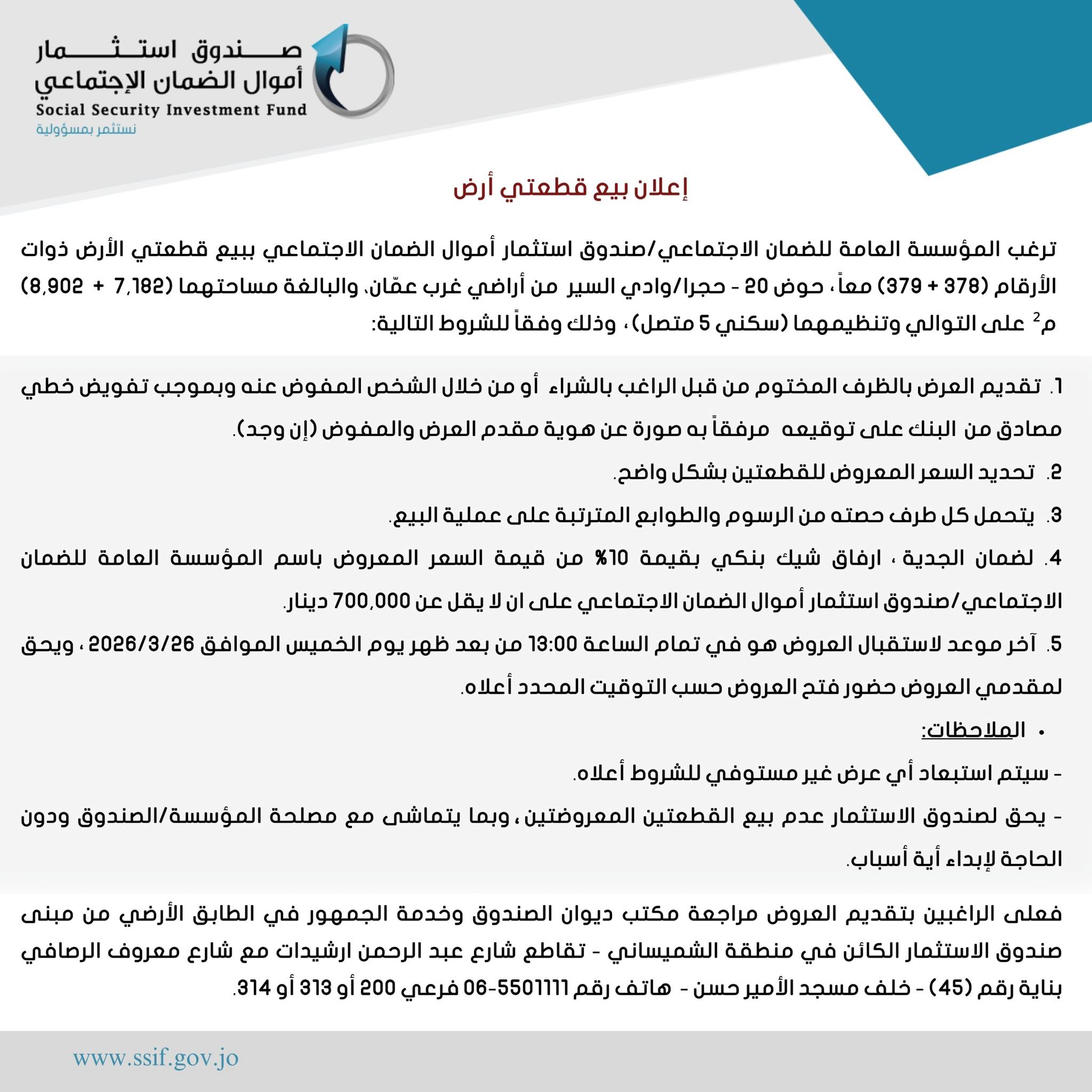 اعلان بيع قطعتي أرض